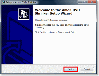 ダウンロードした「AmoK_DVD_Shrinker_v1.XX_(Setup).exe」をクリック