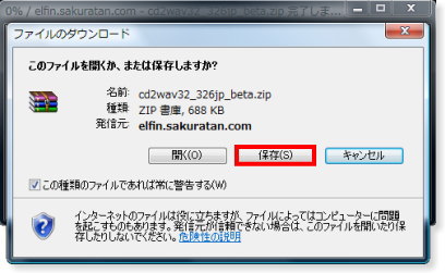 「保存」をクリックして保存先を指定しダウンロード完了です。