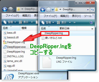 用意した日本語パッチを解凍し、中にある「DeepRipper.lng」をDeepRipper本体のある同じ場所へコピーします。