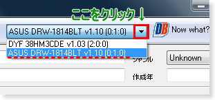 使用しているPCの光学ドライブを選択します。