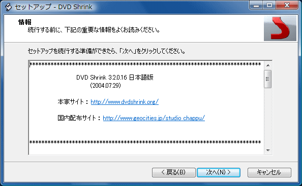1.DVD Shrink本体をダウンロードし、解凍したら
