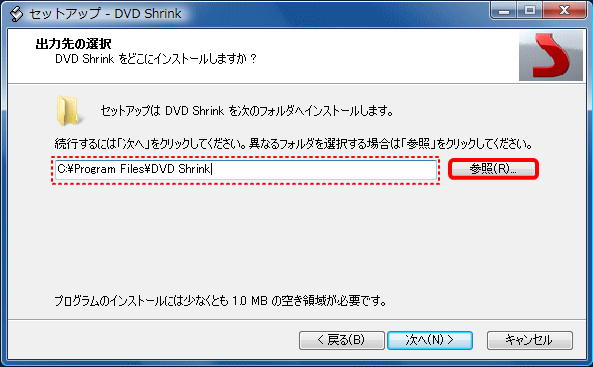 ここではDVD Shrinkのインストール先を決める事が出来ます。