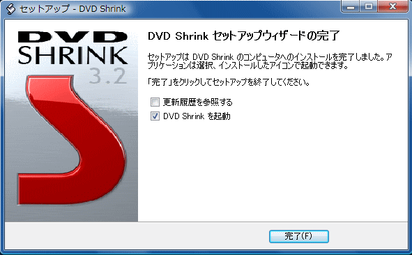「完了」を押してDVD Shrinkを起動させればインストール完了です。